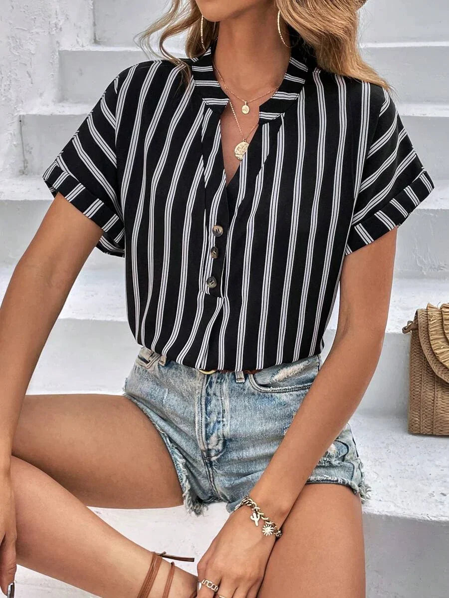 Le top Alice joue avec les rayures pour offrir un style graphique et sophistiqué. Sa coupe chic met en valeur la silhouette avec subtilité, tandis que son tissu léger assure un confort parfait tout au long de la journée. Une pièce essentielle pour celles qui aiment affirmer leur style avec simplicité.