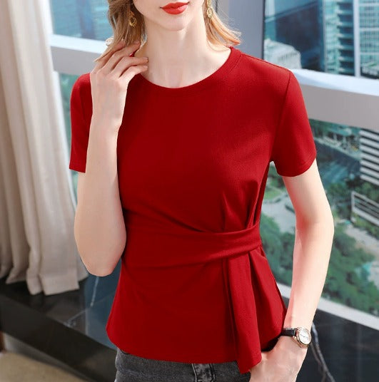 Le top Joséphine incarne le raffinement simple avec une coupe soignée et des finitions impeccables. Ses manches courtes et son style épuré en font un indispensable pour composer un look chic sans effort. Il se prête aussi bien à une tenue de travail qu’à une sortie élégante.