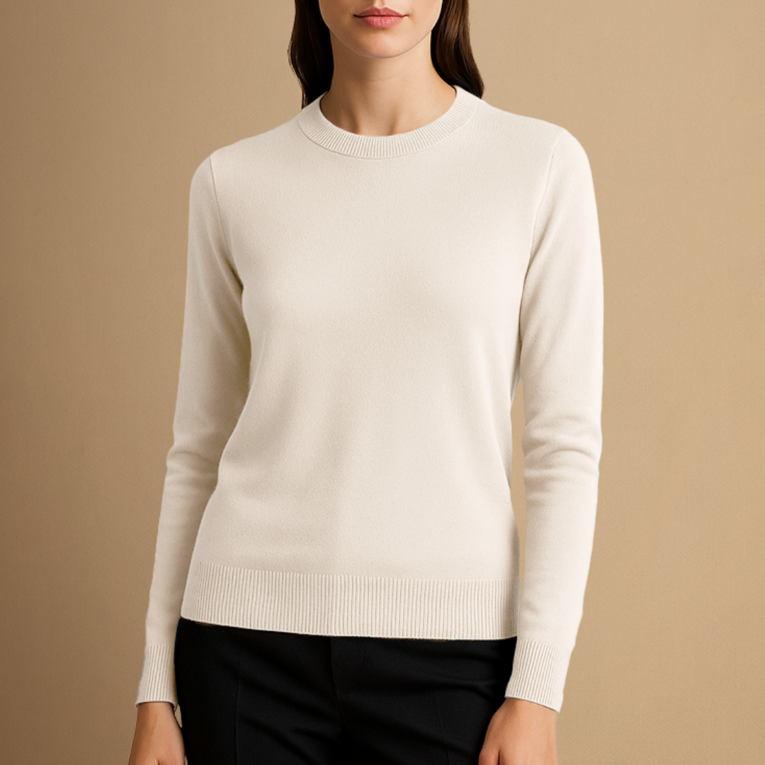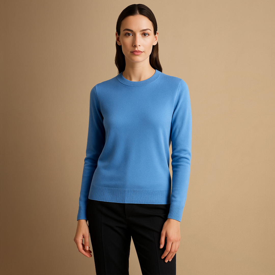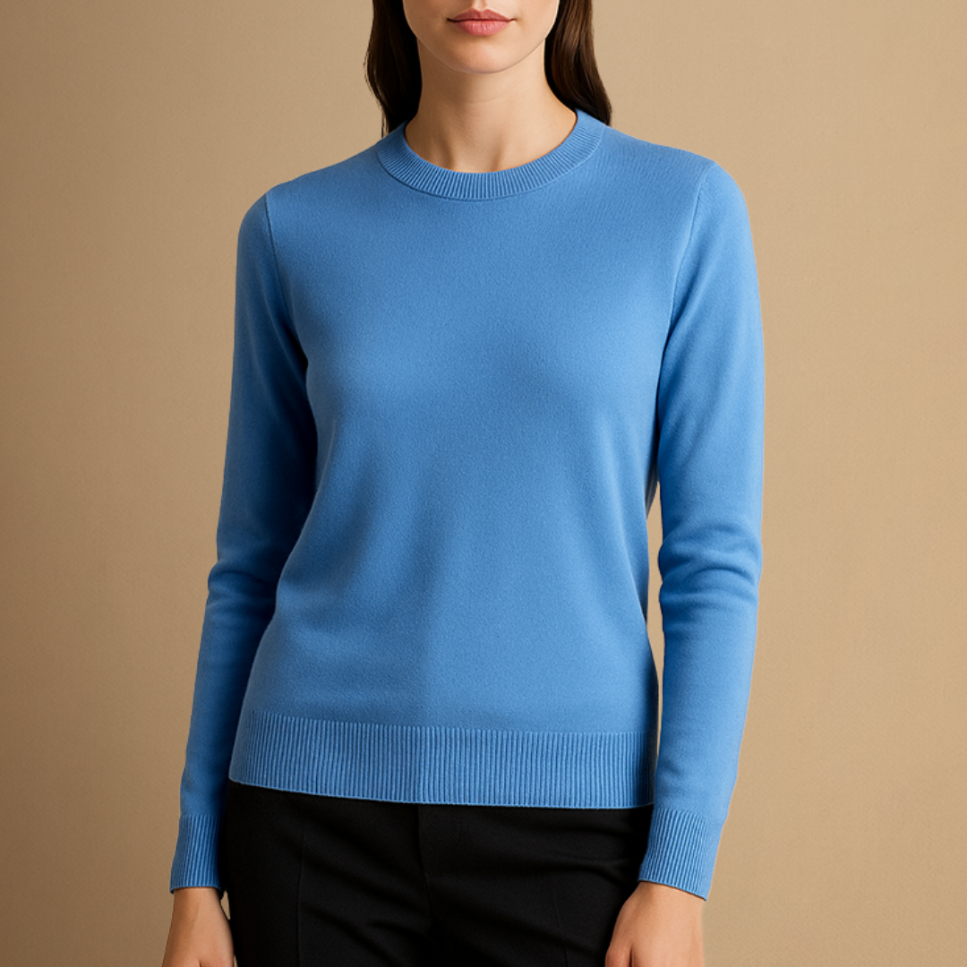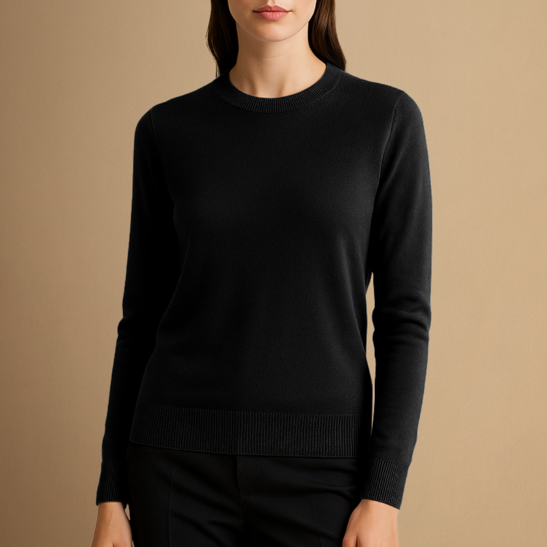 Ce pull pour femme présente un col rond classique qui lui confère une structure simple et équilibrée. Sa coupe droite crée un drapé naturel. Les manches longues offrent une bonne couverture et complètent le style sobre du modèle. Les finitions soignées renforcent son aspect net et soigné. Ce vêtement s'intègre facilement à toutes les tenues de tous les jours.