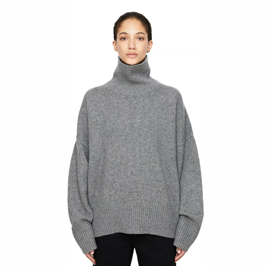 Ce pull pour femme présente un col roulé grand qui apporte une structure équilibrée au vêtement. Les manches longues offrent une bonne couverture et complètent le style sobre du modèle. Les finitions soignées renforcent l'aspect net et soigné. Ce vêtement s'adapte facilement aux tenues hivernales de tous les jours.